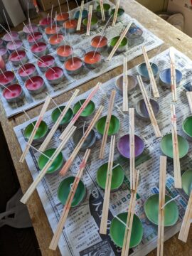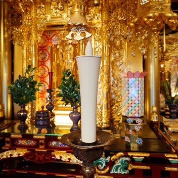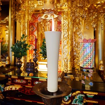 ご本堂内陣の燭台の灯明は言わずもがな蝋燭です。しかし、ご門徒の皆様のご法事をお勤めさせて頂く時に、余りにも短くなった蝋燭を使うことは心苦しいところです。故に蝋燭を最後まで使わずだんだんとたまっていきます。もちろん、境内墓地の火付け処で使用したり、溶かして灯籠用のキャンドルにしたりと活用しますが、全く追いつきません。