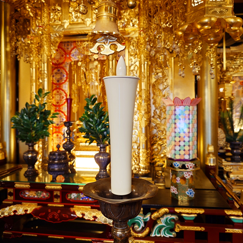 そこでかねてから気になっていた液体の蝋燭を検討するようになりました。浄土真宗本願寺派のお寺に配布される宗報という冊子に広告で出ていた物に目がとまり、その商品にしてみることにしました。