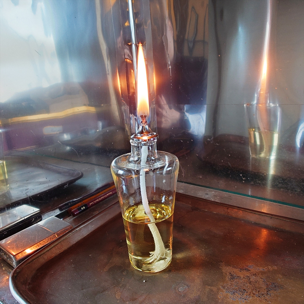 火も非常に美しく灯り、なんといってもこの蓋が秀逸です。蓋をすると木蝋のような佇まい。これって昔の理科のアルコールランプのように蓋で消火したらいいんじゃないのかなと、問い合わせてみましたら「蓋で消してもOK」とのことなので更に最高です。