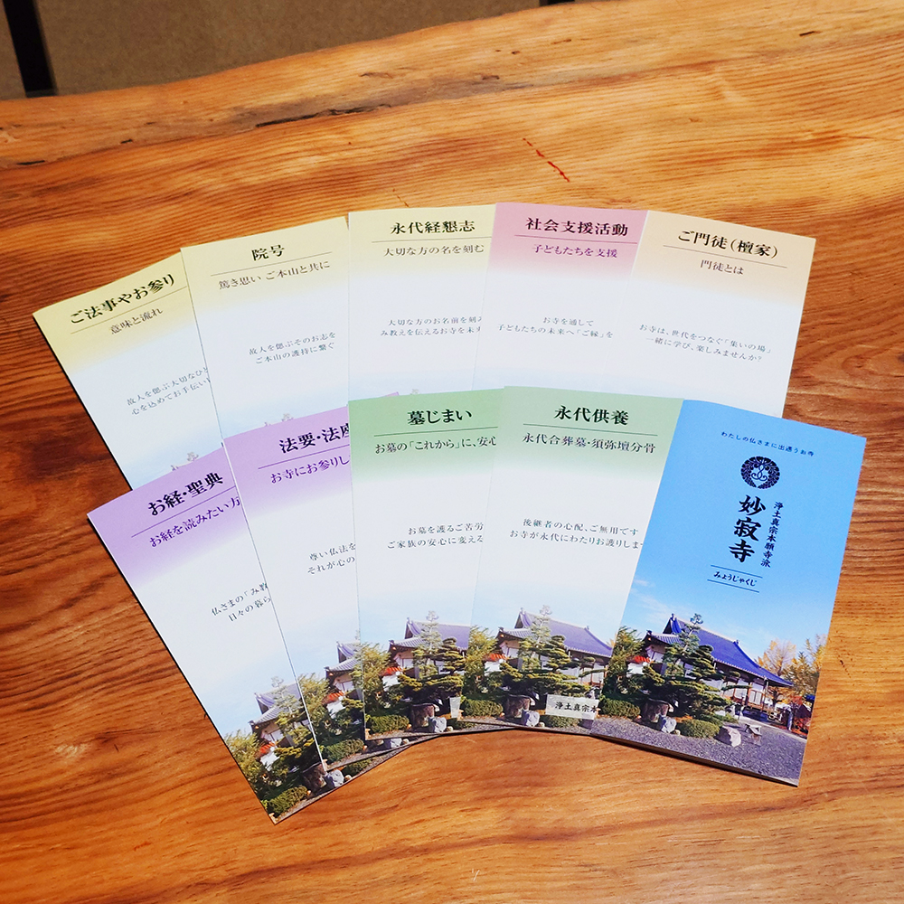 この度ご本堂や庫裏の玄関などに置いてある三つ折りリーフレットを一新しました。